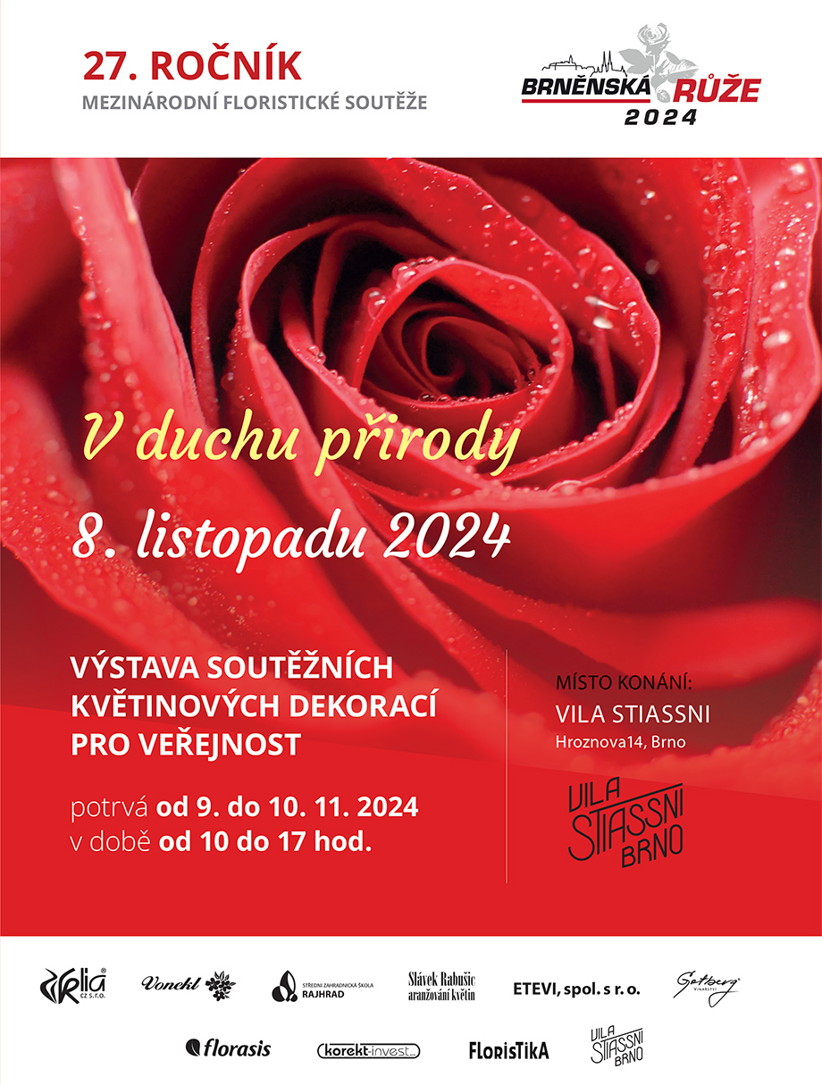 Floristická soutěž Brněnská růže, která se během uplynulých let stala počtem soutěžících nejnavštěvovanější soutěží tohoto typu v rámci České republiky, oslaví letos 27 let od svého založení. Po velice úspěšných minulých ročnících v noblesním a dokonale zachovanému interiéru brněnské prvorepublikové vily Stiassni proběhne tato floristická událost opět na tomto po všech stránkách vyhovujícím místě.