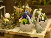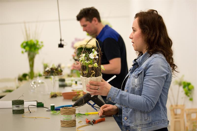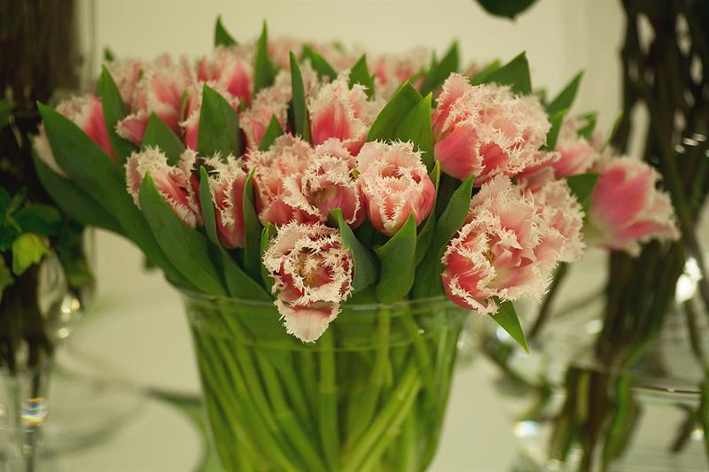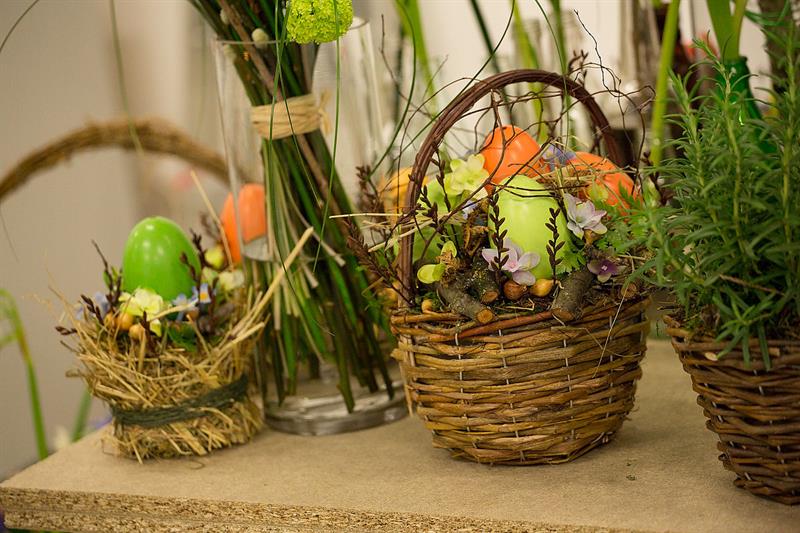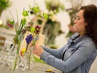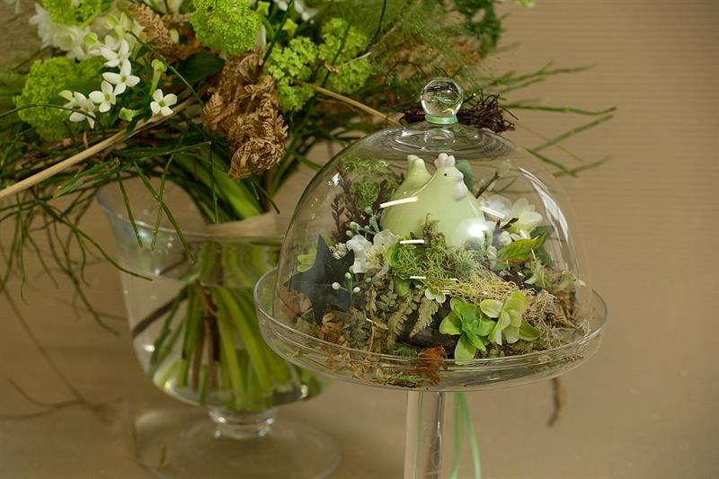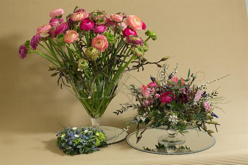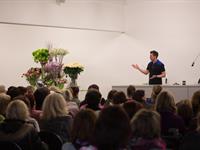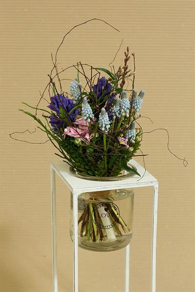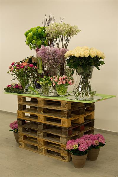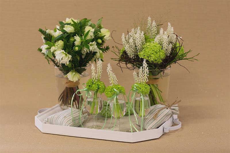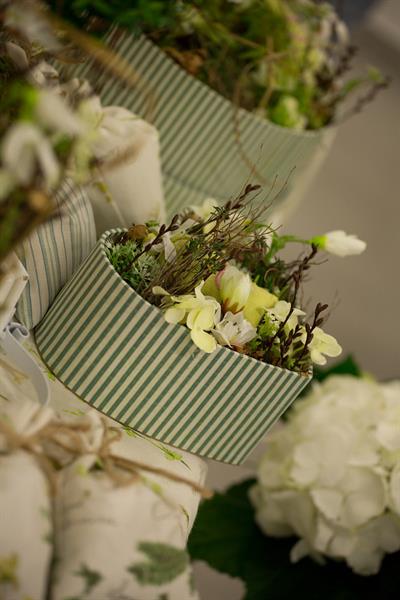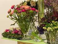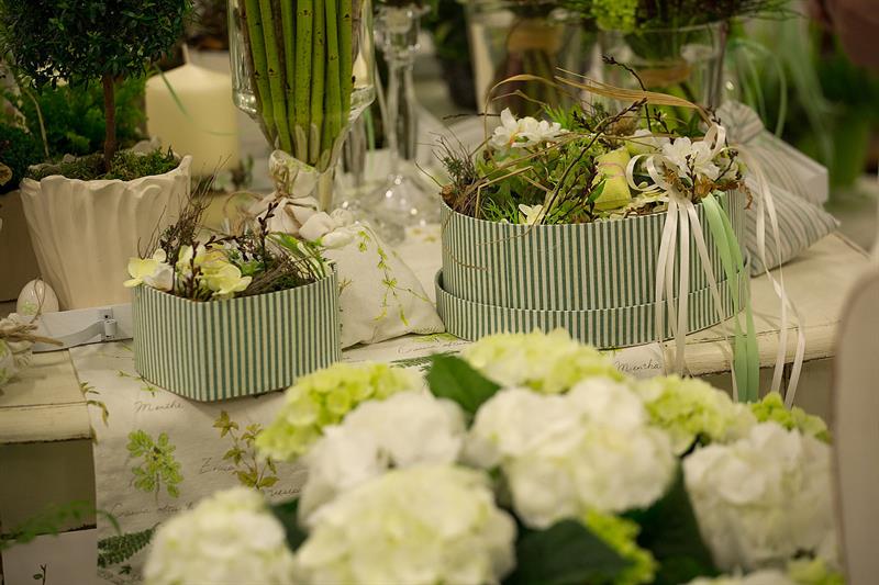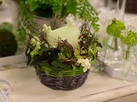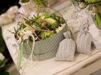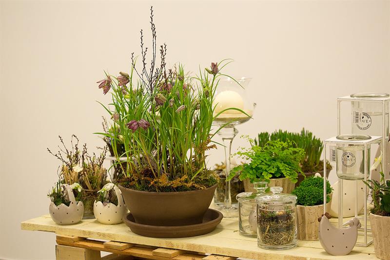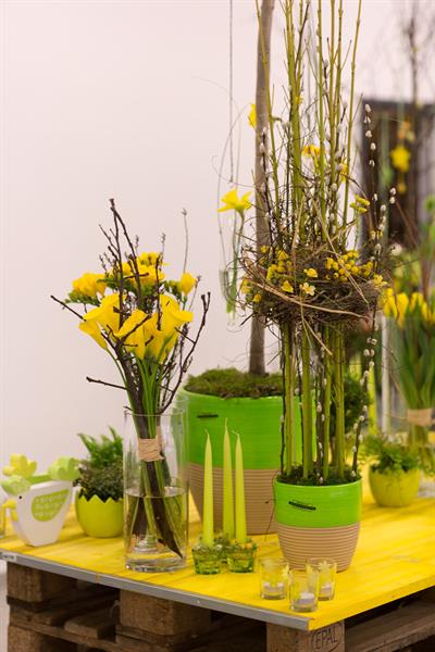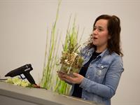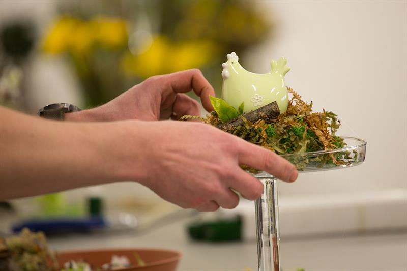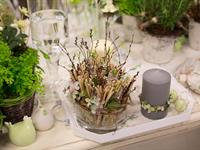 jarní inspirace. Michal Haut se snažil představit celkový koncept vystavování zboží v obchodě a vytvořil tématické celky, kam postupně doplňoval své práce. Během semináře byly představeny řezané květiny, které patří k jaru a ne vždy jsou tolik vidět v květinářstvích. Jedná se například o řezané Muscari, Hyacinthus, Magnolia, Cornus, Prunus, Viburnum, Syringa, Ranunculus Cloney.