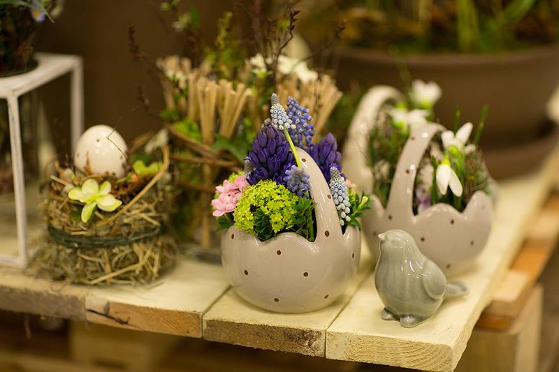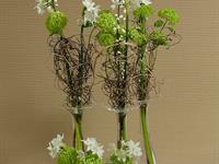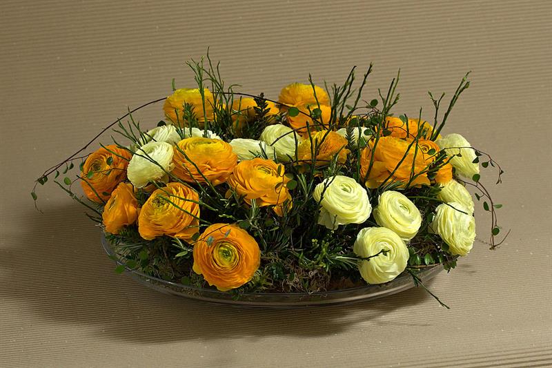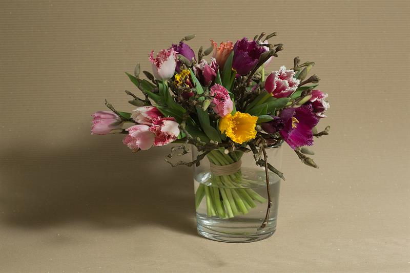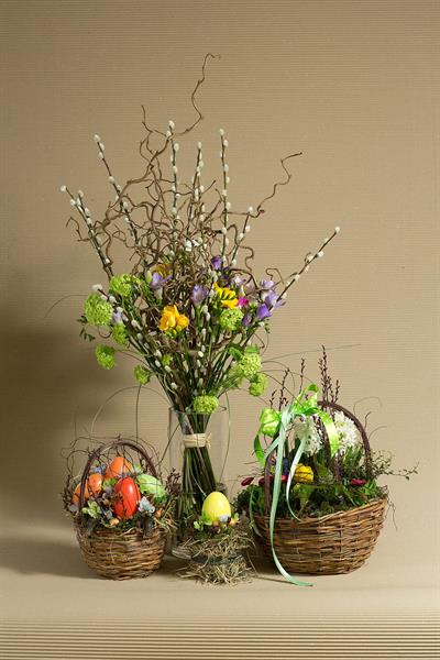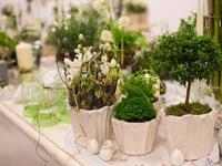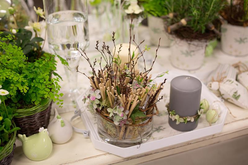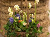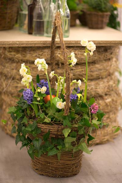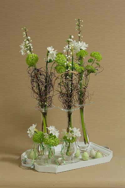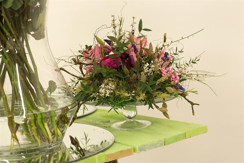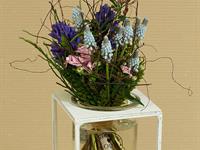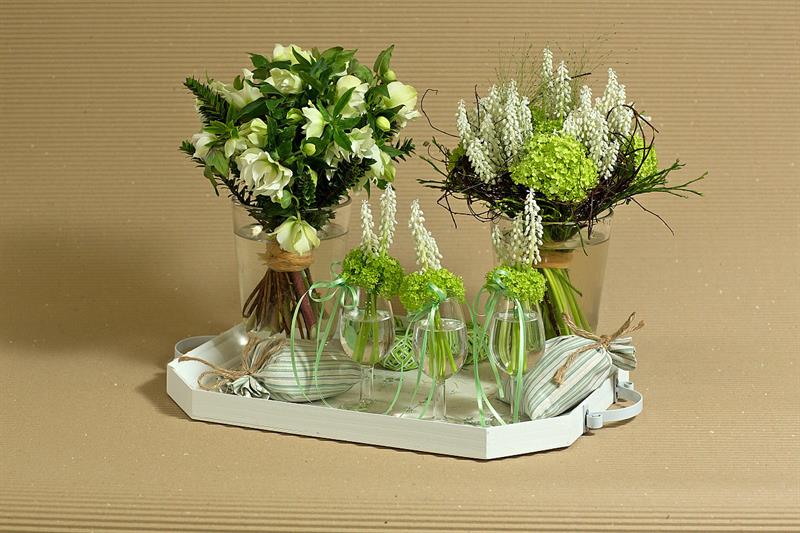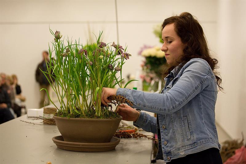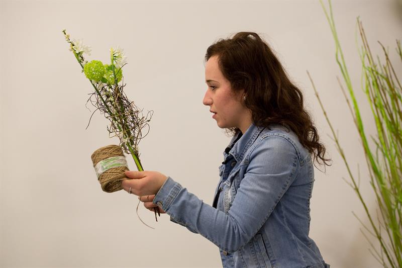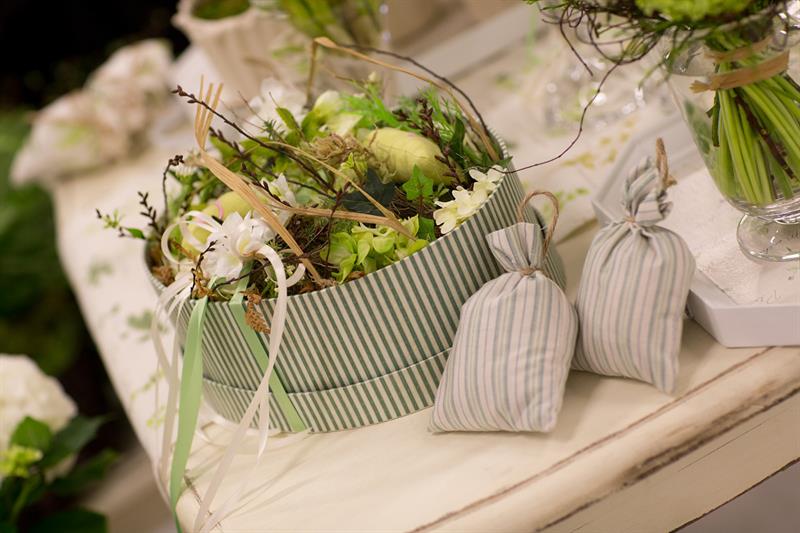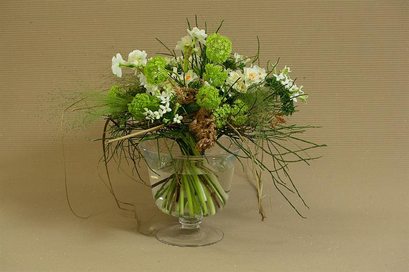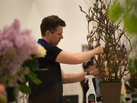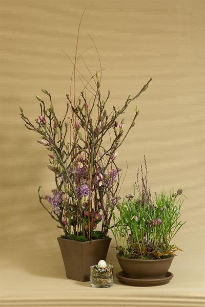 jarní inspirace. Michal Haut se snažil představit celkový koncept vystavování zboží v obchodě a vytvořil tématické celky, kam postupně doplňoval své práce. Během semináře byly představeny řezané květiny, které patří k jaru a ne vždy jsou tolik vidět v květinářstvích. Jedná se například o řezané Muscari, Hyacinthus, Magnolia, Cornus, Prunus, Viburnum, Syringa, Ranunculus Cloney.