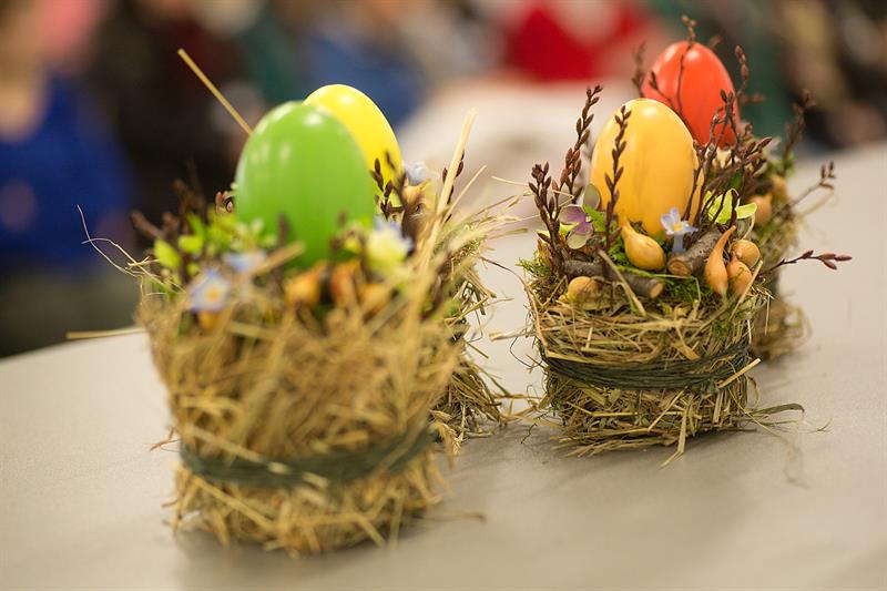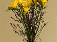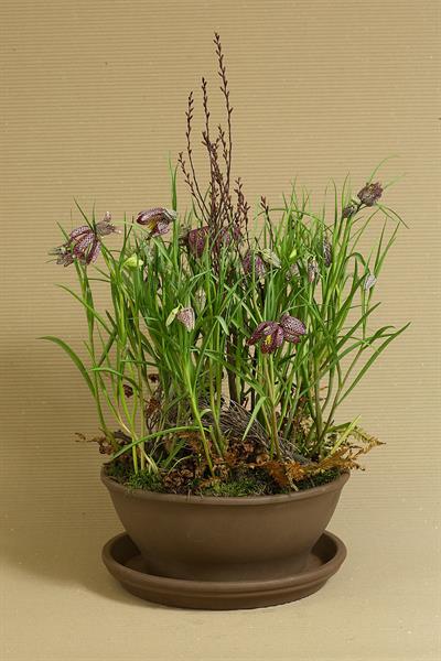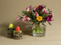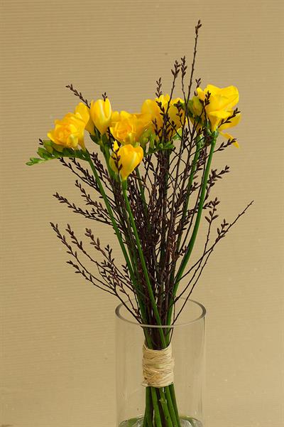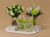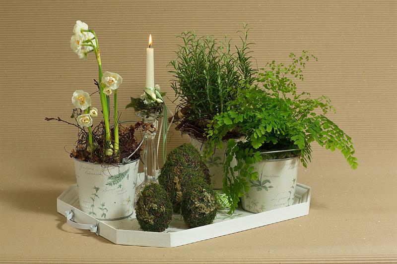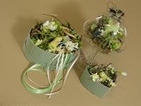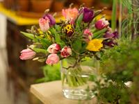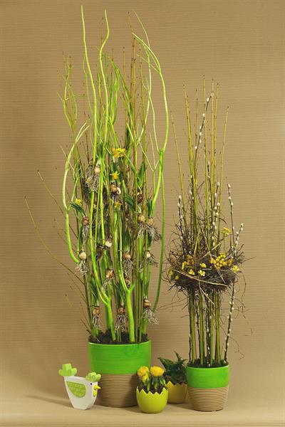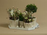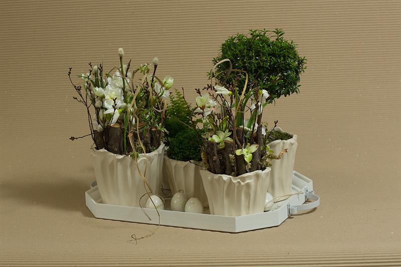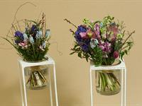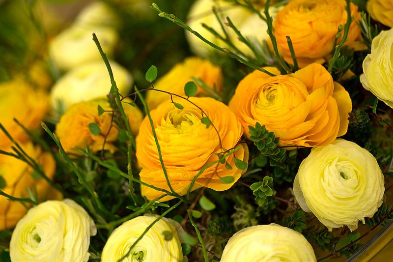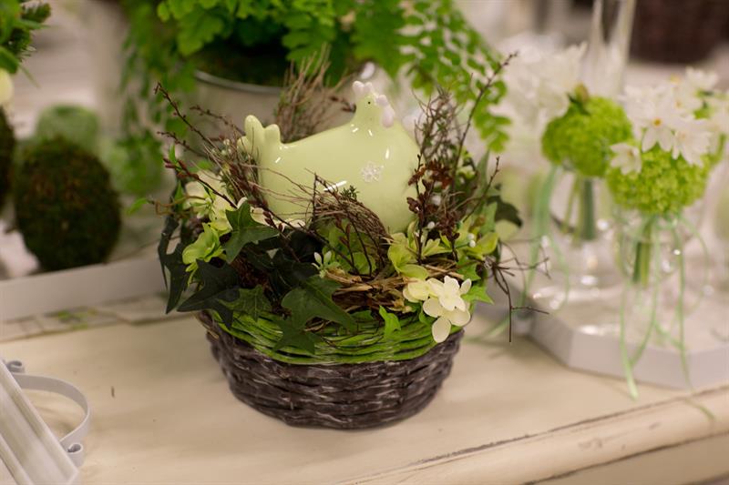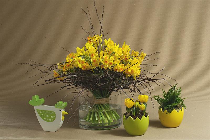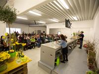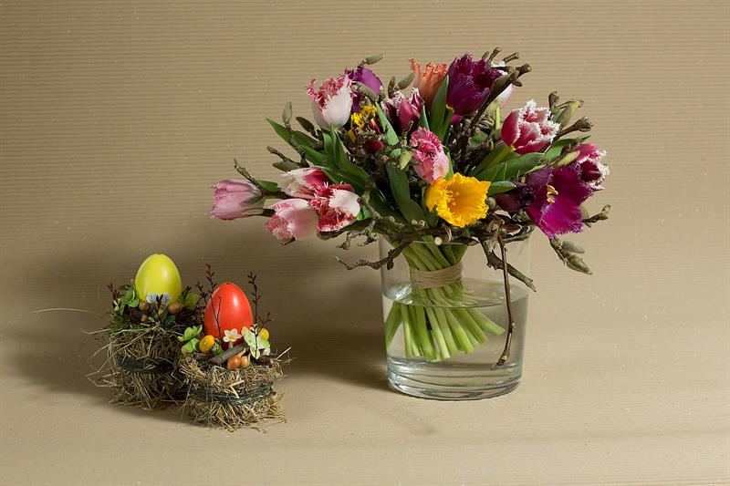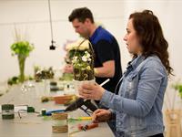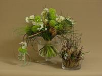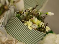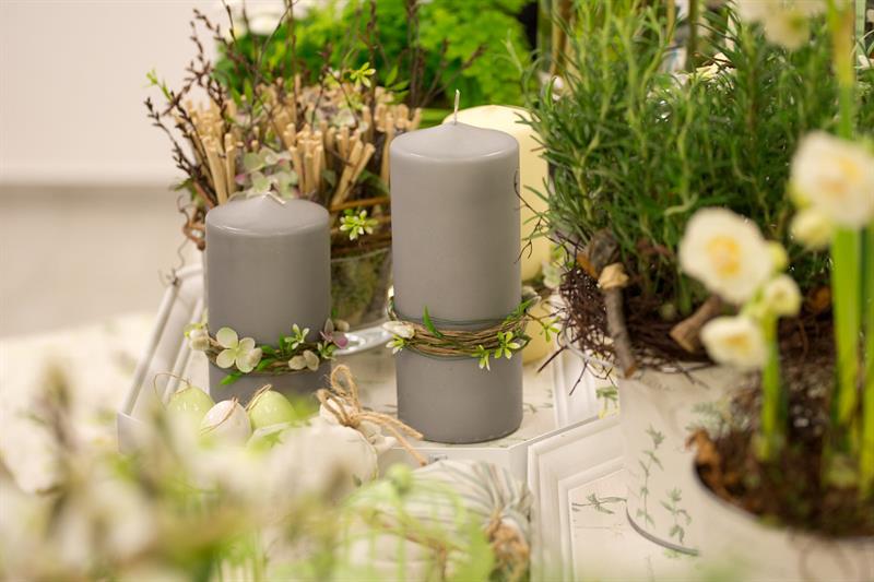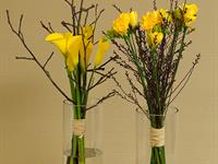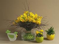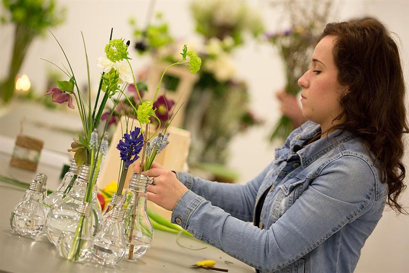 jarní inspirace. Michal Haut se snažil představit celkový koncept vystavování zboží v obchodě a vytvořil tématické celky, kam postupně doplňoval své práce. Během semináře byly představeny řezané květiny, které patří k jaru a ne vždy jsou tolik vidět v květinářstvích. Jedná se například o řezané Muscari, Hyacinthus, Magnolia, Cornus, Prunus, Viburnum, Syringa, Ranunculus Cloney.