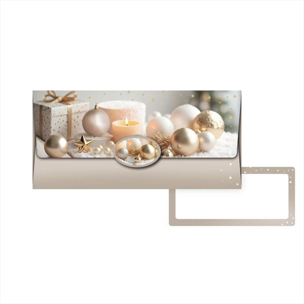 • Popis:Rozměr: 90 mm x 180 mm x 2 mm (Š x V x H) Luxusní papírová obálka vysoké gramáže. Uvnitř vložená prázdná karta k napsání vzkazu (věnování)