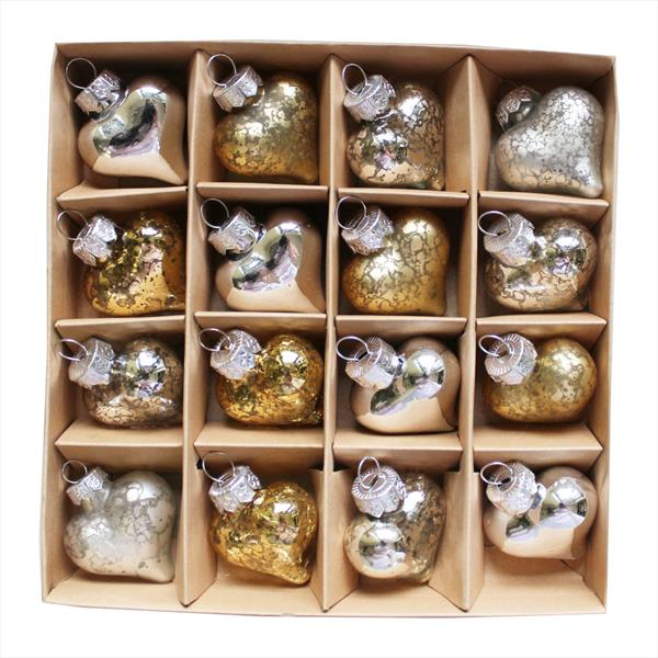 Srdce baňky sklo 16ks/4cm antique - velkoobchod, dovoz květin, řezané květiny Brno