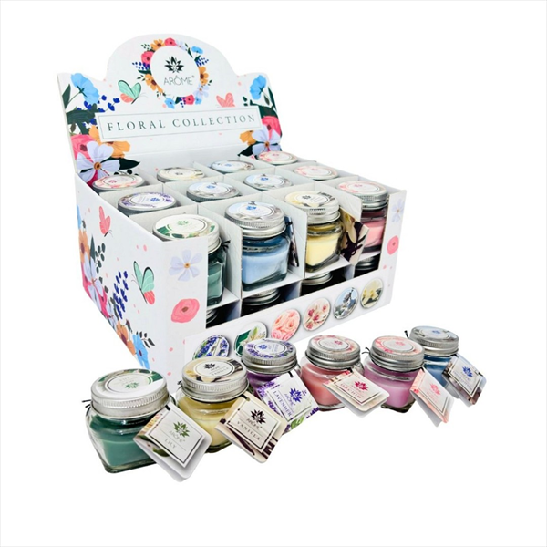 • Popis: Vonná svíčka ve skleněné dóze s víčkem vám doma vykouzlí příjemnou atmosféru a nádherně provoní interiér. Plamínek svíčky je ideální pro vaši pohodu v podzimních a zimních měsících. Svíčky mají cedulku, kam můžete napsat osobní vzkaz. I proto je svíčka vhodná jako dárek. Doba hoření jedné svíčky 10 hodin. Sada Floral obsahuje vůně: levandule lilie růže orchidej fresh cotton vanilka Průměr: 5,7 cm Výška: 5,2 cm