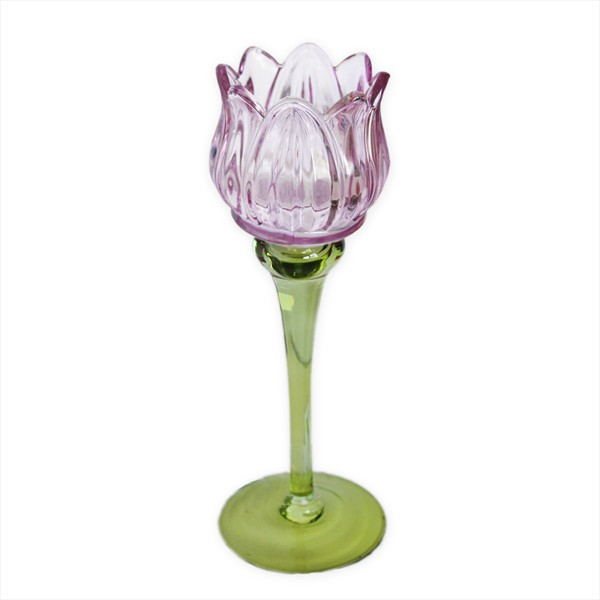 Svícen květ sklo 21,5cm růžová