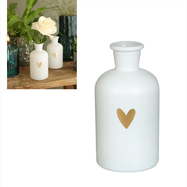 Vázička bílá se zlatým srdíčkem pr. 7/v. 12 cm