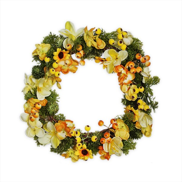 Věnec PE květy 29cm žlutá