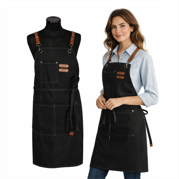 Kvalitní pracovní zástěra se 2 kapsami ze silnějšího bavlněného materiálu, kožené zdobení. Univerzální velikost díky řešení spojeného utahovacího pásku v pase a na ramenou.