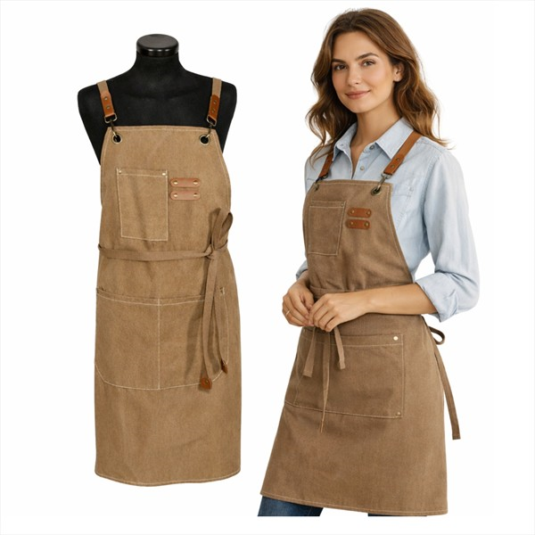 Kvalitní pracovní zástěra se 2 kapsami ze silnějšího bavlněného materiálu, kožené zdobení. Univerzální velikost díky řešení spojeného utahovacího pásku v pase a na ramenou.